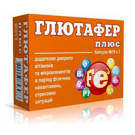 Состав мг/капсулу: железа (III) глютаманата - 80,0; рибофлавина (витамин В2) - 0,8; никотинамида (витамин РР) - 16,0; пиридоксина гидрохлорида (витамин В6) - 1,4; цианокобаламина (витамин В12) - 0,002; фолиевой кислоты - 0,20; глицина - 80,0; селената натрия - 0,008; цинка глютамината - 3,0; меди глютамината - 0,8; марганца глютамината - 1,0; кобальта глютамината - 0,04; вспомогательные вещества: кальция стеарат, крахмал картофельный, масло вазелиновое.