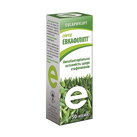 Спосіб застосування та дози. Евкафіліпт® застосовувати місцево. Перед першим застосуванням, а також якщо спрей Евкафіліпт® не застосовували протягом тривалого часу (принаймні 1 тиждень), слід натиснути на спрей-насос кілька разів, розпилюючи спрей у повітря, для отримання рівномірного розпилення. Перед використанням збовтати. При запаленнях органів верхніх дихальних шляхів, носоглотки та ротової порожнини (трахеїт, ларингіт, фарингіт, гінгівіт, стоматит) дорослим наносити місцево, розпилюючи препарат у порожнину рота, шляхом 3–4 натискань на спрей-насос 3–4 рази на добу протягом 3–4 днів. При лікуванні ушкоджень шкіри змочити марлеву серветку препаратом і залишити на поверхні шкіри або слизових оболонках на 15–20 хвилин. Процедуру проводити 2 рази на добу. Застосовувати до досягнення лікувального ефекту. Тривалість лікування визначає лікар.
