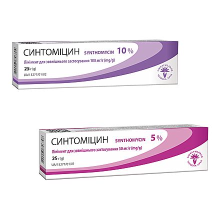 Спосіб застосування та дози. Синтоміцин призначають зовнішньо. Лінімент наносять на уражені ділянки і зверху накладають пов’язку, з пергаментним або компресним папером чи без такого. Зміна пов’язок робиться щоденно або через день. При тріщинах сосків після годування дитини грудну залозу обережно обмивають і на стерильній серветці накладають 5 % лінімент. Термін застосування – 2–5 днів.